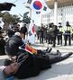 국회 앞에 드러누운 ‘태극기 부대’ 13일 서울 여의도 국회 본청 앞에서 이른바 ‘태극기 부대’ 시위대가 김진태 이종명 김순례 의원에 대한 당 윤리위원회 제소 철회를 촉구하고 있다. 양회성 기자 yohan@donga.com |