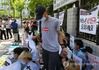 종교적 이유로 난민지위 인정을 신청한 이란국적 학생 김민혁군(가운데)이 작년 7월 친구들의 응원을 받으며 난민신청서를 내러 가고 있다. [연합뉴스 자료사진] |