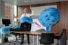 머펫(Muppet) 인형 모양의 이 커다란 괴물은 'BREXIT'라는 빨간색 글자를 가슴에 새긴 하얀 티셔츠를 입고 블로크 장관의 책상 위에 머리를 한쪽 팔로 괴고 누워있다.