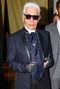 어두운 컬러의 슈트와 검정 선글라스, 뒤로 묶은 흰 머리, 그리고 손가락 장갑차림은 생전의 칼 라거펠트가 즐겼던 트레이드 마크였다. |