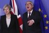 20일(현지시간) 벨기에 브뤼셀에서 테리사 메이 영국 총리(왼쪽)와 장 클로드 융커 유럽연합(EU)집행위원장이 브렉시트 관련 회담에 앞서 기념사진을 찍고 있다. [이미지출처=AP연합뉴스] |