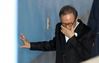 이명박 전 대통령이 18일 오후 서울 서초구 서울고법에서 열린 속행공판에 출석하고 있다./연합뉴스 |