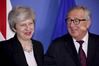20일(현지시간) 브뤼셀을 찾은 테리사 메이 영국 총리(왼쪽)가 장 클로드 융커 유럽연합(EU)집행위원장과의 브렉시트 회담에 앞서 기념사진을 찍고 있다. [이미지출처=AP연합뉴스] |