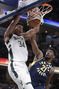 미국프로농구(NBA) 밀워키 벅스 야니스 안테토쿤보(왼쪽)가 13일(현지시간) 미국 인디애나주 인디애나폴리스에서 열린 2018-2019 NBA 정규리그 인디애나 페이서스와의 경기 후반에 덩크슛을 넣고 있다. /사진=인디애나폴리스[미 인디애나주] AP |