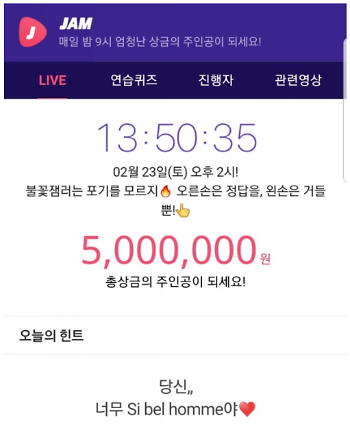 23일 오후 2시에 대국민 라이브 퀴즈쇼 '잼라이브'가 펼쳐진다. 이날 잼라이브 총상금은 500만원이다.