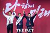 27일 오후 경기도 고양 킨텍스에서 열린 자유한국당 제3차 전당대회에 당 대표 후보자와 최고위원, 청년최고위원 후보자를 비롯한 각계 각층의 지지자들이 함께 단상에 올라 인사를 하고 있다. /남윤호 기자 |