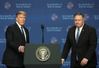 제2차 북미정상회담 이틀째인 28일(현지시간) 도널드 트럼프(왼쪽) 미국 대통령이 베트남 JW메리어트 호텔에서 마이크 폼페이오 국무장관과 기자회견을 하고 있다. 하노이/AP뉴시스 |