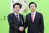 김상조 공정거래위원장이 4일 국회에서 황교안 자유한국당 대표를 찾아 인사를 나누고 있다./윤동주 기자 doso7@ |