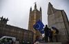 지난 2월 28일, 영국 런던의 의사당 앞에서 유럽연합(EU) 탈퇴를 반대하는 시위대가 EU 깃발을 들고 있다.EPA연합뉴스