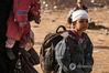 이달 1일 IS 진영에서 빠져나온 후 아기를 안은 채 앉아 있는 소년 |