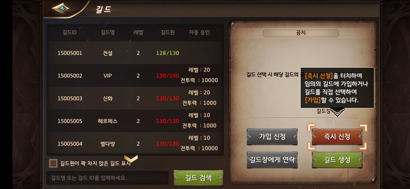 혼자 즐기는 것이 편한 게이머나, 게임을 하드코어하게 즐기지 않는 게이머도 길드에 가입하는 것이 좋다. 길드 1레벨부터 100명의 길드원을 모집할 수 있는 게임의 특성상 라이트 유저도 부담이 적다. 길드에 가입한 것 자체로 얻을 수 있는 보상도 있으니 길드는 꼭 가입하도록 하자.