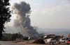시리아 반군 지역 이들립에서 솟는 연기 |