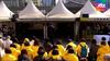 떼어내 차곡차곡 포갠 영정은 광장을 한 바퀴 돌아봅니다.