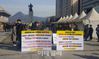 18일 오전 철거를 앞두고 4·16 세월호 참사 가족협의회 정성욱 선체인양분과장 등이 진상규명을 촉구하는 피켓을 들고 있다. (사진=김동현 기자) |