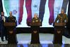 알리 아윱 시리아(가운데) 국방장관과 모하마드 바게리(왼쪽) 이란군 참모총장, 오스만 알가니미 이라크군 참모총장이 18일(현지시간) 시리아 다마스쿠스에서 기자회견하고 있다.AP 연합뉴스 |