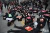 21일 서울 세종문화회관 계단에서 한국여성단체연합 회원들이 '버닝썬' 관련 공권력 유착 진상규명과 엄중처벌 촉구하는 퍼포먼스를 하고 있다.