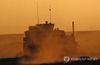 흙먼지 속에서 이동하는 시리아민주군(SDF) 차량 |