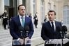![엘리제궁에서 기자회견하는 에마뉘엘 마크롱 프랑스 대통령(오른쪽)과 레오 바라드카르 아일랜드 총리(왼쪽)