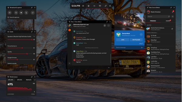 새로운 Xbox 소셜 위젯을 통해 친구들이 어떤 게임을 플레이하는지 확인할 수 있다. 또한, 게임 바를 통해 메시지를 주고받고 보이스 채팅을 할 수 있으며, 믹서 스트림으로 친구들의 플레이 현황을 볼 수 있다. Xbox 소셜 위젯의 친구 목록과 커뮤니케이션 기능은 Xbox One은 물론 iOS, 안드로이드, 윈도우 10 지원 Xbox 앱에서도 동일하게 적용된다. 플레이 도중 언제든지 Windows 로고 키 + G 클릭으로 게임 바를 열어 플레이 흐름 끊김 없이 빠르게 메시지를 보낼 수 있다.