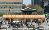 세월호 참사 5주기를 나흘 앞둔 12일 서울 광화문광장을 약 4년 8개월간 지킨 세월호 천막 자리에 서울시의 추모시설 ‘기억·안전 전시공간’이 문을 열었다. 이 공간은 79.93㎡ 규모의 목조건물로 전시실 2개와 시민참여공간·안내공간으로 구성됐다. /성형주기자 [ⓒ 서울경제, 무단 전재 및 재배포 금지]