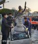 부산시 관계자들이 12일 오후 부산 동구 정발 장군 동상 앞 인도에 있던 강제징용 노동자상을 철거하고 있다. 일본영사관 인근 노동자상 설치는 반대하던 부산시가 기습적으로 행정대집행에 나서 시민단체 반발이 예상된다. 연합뉴스 |