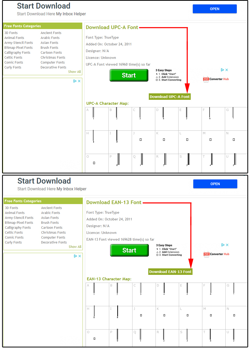 4. EAN-13 글꼴 다운로드(Download EAN-13 Font)에 대해 1~3단계를 반복한다.