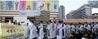 지난 15일 오후 서울 광화문광장에서 열린 세월호 참사 5주기 추모 미사에서 사제단이 입장하고 있다. 연합뉴스 |