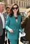 공개된 사진 속 앤 해서웨이는 청록색의 슈트를 입고 선글라스를 착용한 채 환하게 웃으며 이동 중인 모습. 트레이트 마크 백만불 미소가 시원하다.