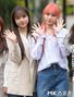 아이즈원 김채원, 조유리가 포토타임을 갖고 있다.