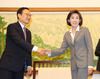 더불어민주당 홍영표(왼쪽), 자유한국당 나경원 원내대표가 22일 오전 국회에서 열린 문희상 국회의장 주재 여야 5당 원내대표 회동에 참석해 인사하고 있다. 2019.4.22 연합뉴스 |