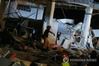 22일(이하 현지시간) 필리핀 북부 팜팡가 주에서 규모 6.1의 지진이 발생한 가운데 한 구조대원이 무너진 상가 건물 잔해 더미에서 생존자를 수색하고 있다.