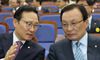 더불어민주당 이해찬 대표(오른쪽)와 홍영표 원내대표가 23일 국회에서 열린 의원총회에서 이야기를 나누고 있다. |연합뉴스 |