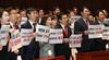 23일 오전 국회에서 열린 한국당 긴급 의원총회에 참석한 나경원 원내대표는 “연동형 비례대표제와 공수처법이 패스트트랙에 태워지는 순간 의회민주주의의 시한부 270일이 시작된다”며 여야 4당의 패스트트랙 합의안을 정면으로 비판했다. 나 원내대표는 “무한권력 대통령, 지리멸렬 국회의 최종배후는 문재인 대통령이다. 한마디로 문 대통령, 청와대가 기획하고 여당이 실천하는 의회 민주주의 파괴”라며 “좌파 연합 세력이 내년 총선에서 절대 과반 의석을 안정적으로 확보하려는 속셈이다. 우리가 막아야 하지 않겠느냐”고 날을 세웠다. 이날 의총에 참석한 당 소속 의원들도 나 원내대표의 발언에 호응하며 패스트트랙 저지를 결의했다.