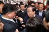 문희상 국회의장이 24일 오전 국회 사법개혁특별위원회 위원인 바른미래당 오신환 의원의 사보임 관련 자유한국당 의원들의 항의 방문을 받은 뒤 쇼크 증세로 병원으로 이동하고 있다. 연합뉴스 |
