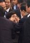 문희상 국회의장이 24일 오전 여야 4당의 선거제·개혁법안 패스트트랙 문제로 국회의장실을 항의 방문한 자유한국당 의원 중 임이자 의원(가운데)의 얼굴을 양손으로 감싸고 있다. [사진=송희경 의원실 제공] |