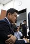 바른미래당 사개특위 위원인 오신환 의원이 24일 당 원내지도부가 자신을 국회 사법개혁특별위원회 위원직에서 사임시키기로 결정 했다는 소식에 강하게 반발, 국회 의사과에서 사보임 신청서 접수를 막기 위해 업무 종료를 기다리고 있다. 연합뉴스 |