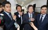 바른미래당 사개특위 위원인 오신환 의원(왼쪽)이 24일 국회 의사과 앞에서 유승민 전 대표(오른쪽 두번째) 등과 이동하고 있다. 오 의원은 이날 당 원내지도부가 자신을 국회 사법개혁특별위원회 위원직에서 사임시키기로 결정했다는 소식에 강하게 반발했다. 2019.4.24 연합뉴스 |
