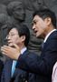 바른미래당 오신환 의원이 25일 서울 여의도 성모병원 앞에서 문희상 국회의장의 오신환 사개특위 간사 사보임 신청 허가에 대한 입장을 밝히고 있다. 왼쪽은 유승민 의원. (사진=뉴시스) |