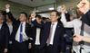 자유한국당 황교안 대표가 26일 오전 국회 의안과 앞에서 공직선거법과 고위공직자범죄수사처법 등의 패스트트랙 저지를 위한 국회 농성을 계속중인 의원들과 당직자들을 격려 방문, 구호에 맞춰 손을 들어보이고 있다. [연합] |