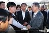 문재인 대통령이 26일 오전 강원도 고성군 토성면 산불피해 복구현장을 찾아 산불 진화에 참여했던 소방관과 공무원을 격려하고 있다. 2019.4.26/뉴스1photo@news1.kr[© 뉴스1코리아(news1.kr), 무단 전재 및 재배포 금지]