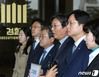 송기헌(왼쪽 세 번째부터)·이춘석·강병원 더불어민주당 의원이 26일 오후 서울 서초구 서울중앙지검에서 자유한국당 국회법 위반 관련 고발장 접수를 기자회견을 하고 있다. 더불어민주당은 나경원 원내대표를 비롯한 자유한국당 의원 18명과 보좌진 2명이 정개특위와 사개특위 회의를 방해할 목적으로 육탄 저지해 국회 회의를 방해하고 의안과에 의안을 접수하려는 국회의원의 공무를 방해했다며 이들을 국회법 위반 등의 혐의로 고발했다. /사진=뉴스1 |