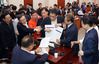 고위공직자범죄수사처(공수처) 설치법안 등의 패스트트랙(신속처리안건) 지정을 위한 사법제도개혁특별위원회 회의가 26일 서울 여의도 국회 문화체육관광위원회 회의실에서 열린 가운데 자유한국당 의원들이 이상민 위원장에게 거세게 항의하고 있다. 뉴시스 |