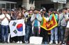 이주노동자들이 28일 오후 서울역 광장에서 ‘2019 이주노동자 메이데이’ 집회에 앞서 지난 21일 발생한 스리랑카 연쇄 테러 희생자를 추모하고 테러를 규탄하는 집회를 하고 있다. [연합] |