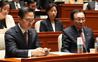 더불어민주당 이해찬 대표와 홍영표 원내대표가 29일 국회에서 열린 의원총회에 굳은 표정으로 참석해 있다. (사진 = 연합뉴스) |