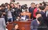 이 위원장은 한국당 관계자들의 고성이 계속되자 "지금 회의장이 소란해서 회의 진행이 어렵다"며 "구호를 외치는 분들을 퇴장해달라"고 촉구했다.