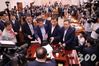 29일 밤 서울 여의도 국회 문화체육관광부 회의장에서 열린 사법개혁특별위원회에 참석하기 위해 자유한국당 의원들이 진입을 시도하고 있다. /사진=이동훈 기자 |