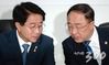 조정식 더불어민주당 정책위의장(왼쪽)이 홍남기 부총리 겸 기획재정부 장관과 대화를 나누고 있다/사진=이동훈 기자 |