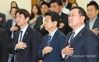국기에 대한 경례하는 민주당 원내대표 후보들 |