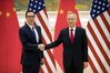 스티븐 므누신(왼쪽) 미국 재무장관과 류허 중국 부총리가 지난 2월 14일 중국 베이징의 국빈관 조어대에서 고위급 무역협상을 시작하기 전 악수를 나누고 있다. /연합뉴스 |