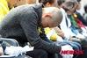2015년 4월16일 오후 제주항 국제여객선터미널 광장에서 제주도교육청 주관으로 세월호 참사 1주기 추모식이 열리고 있는 가운데 사고 생존자이자 '파란 바지의 의인'으로 불리는 김동수씨가 고개를 숙여 흐느끼고 있다. /사진=뉴시스 |